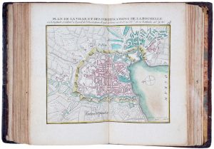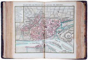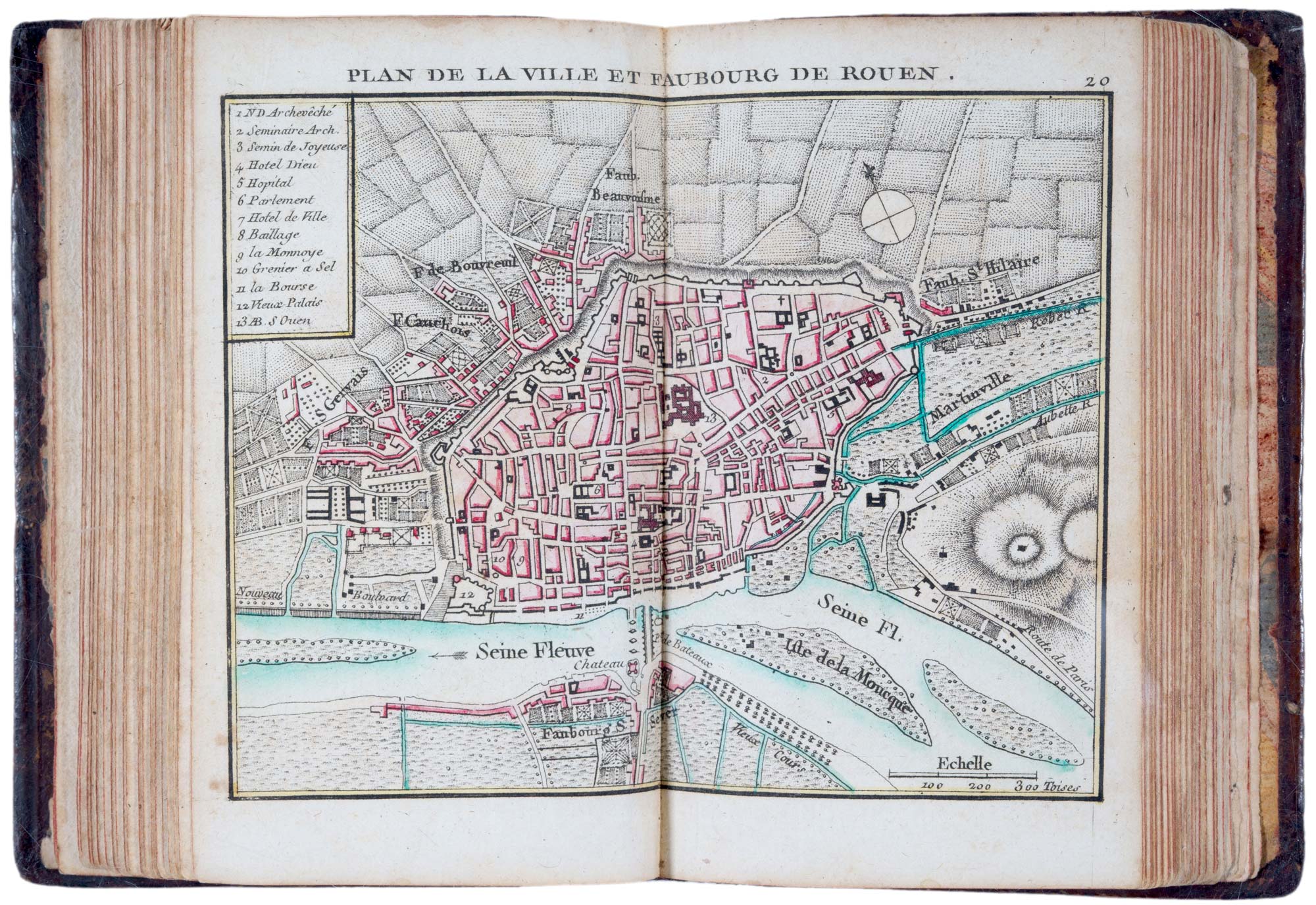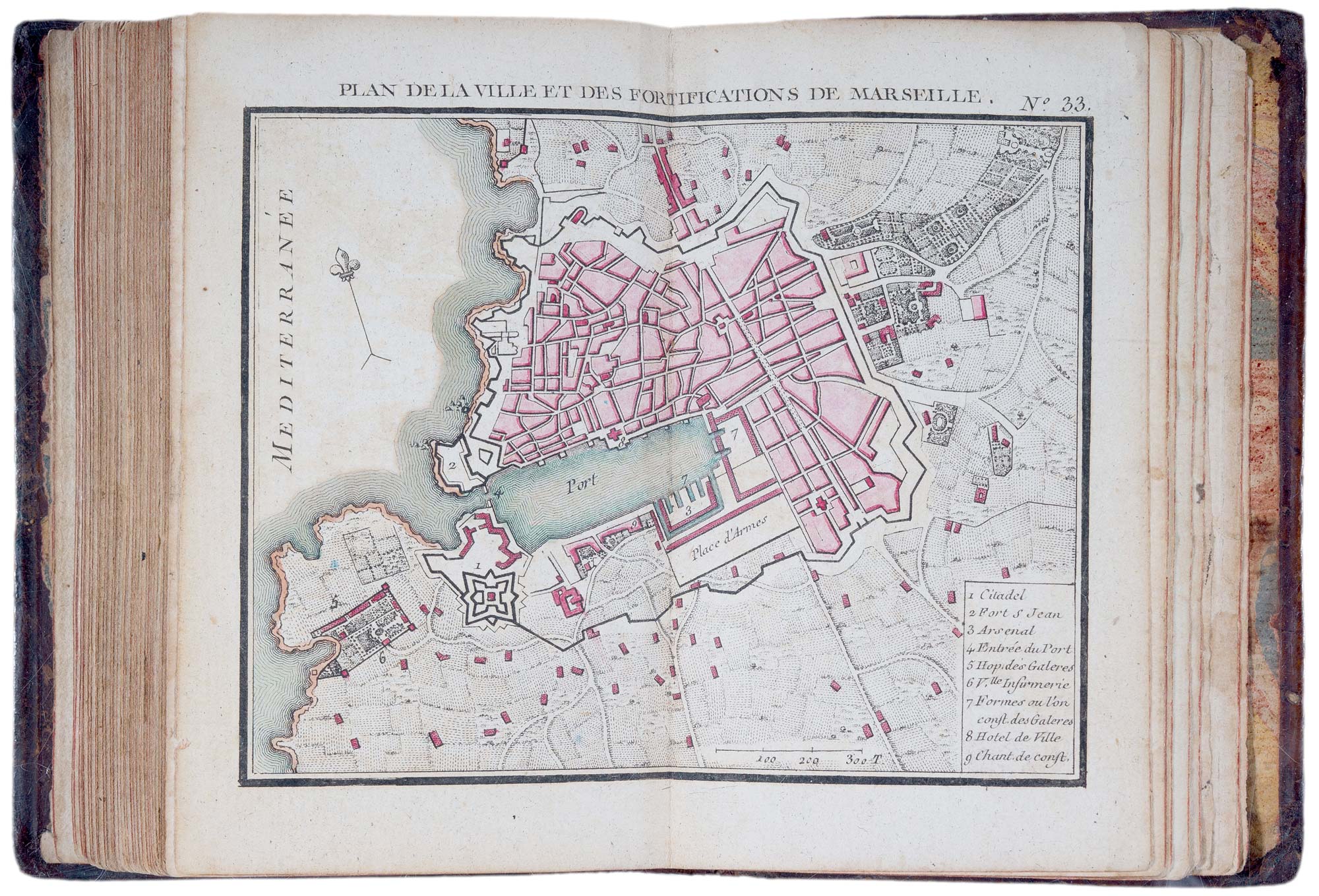 Paris: Lattré, 1778. 16mo (130 x 90mm), contemporary full mottled calf, gilt decorated spine, marbled endpapers; engraved title, and 35 numbered maps in original colour, as called for, pp. (4)(incl. index of maps) + pp. 31-49 (descriptions of towns).
