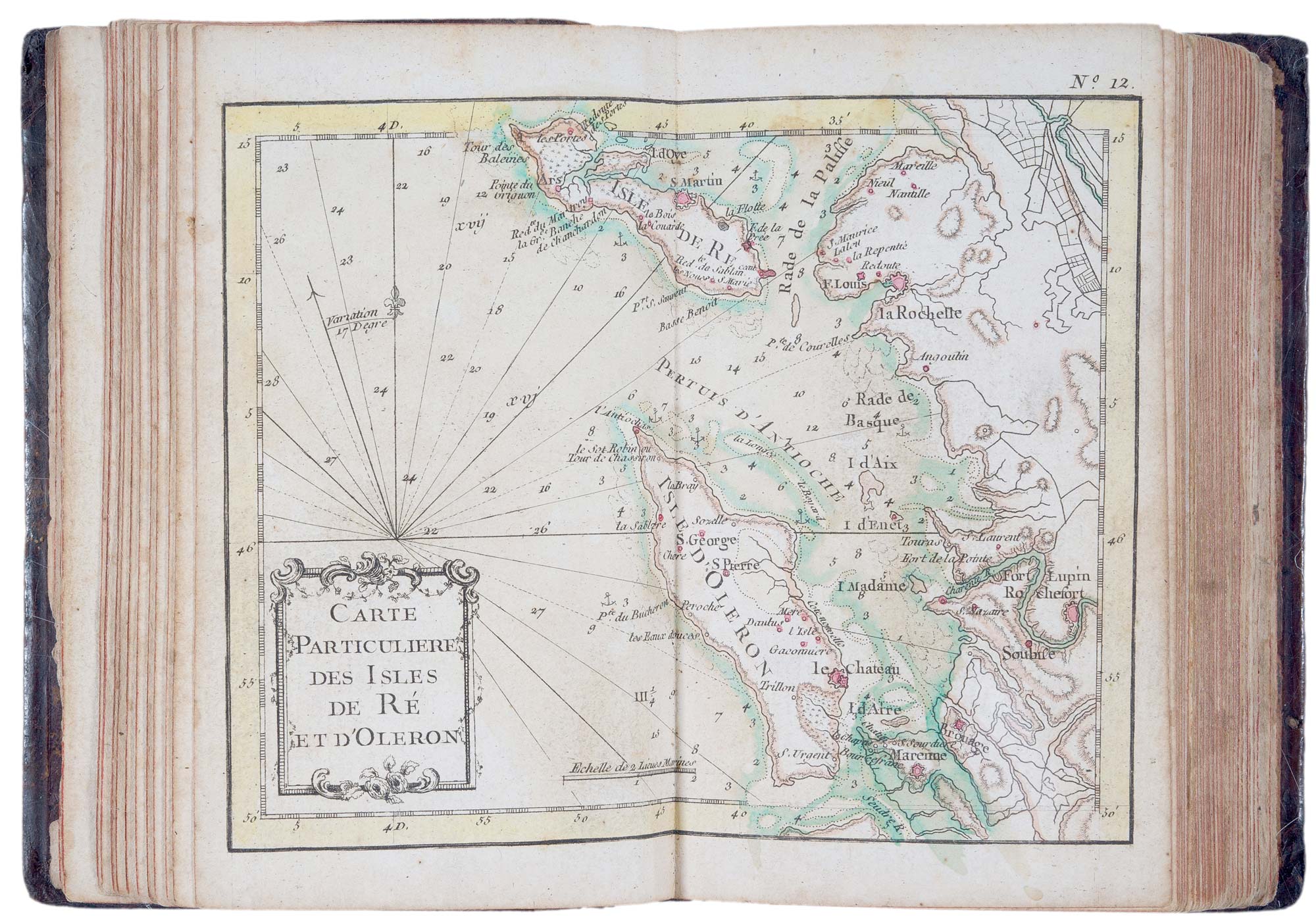 A charming pocket atlas containing 13 charts of the coasts and islands of France and 22 townplans, all with fine original hand colour.