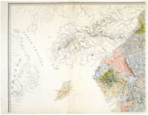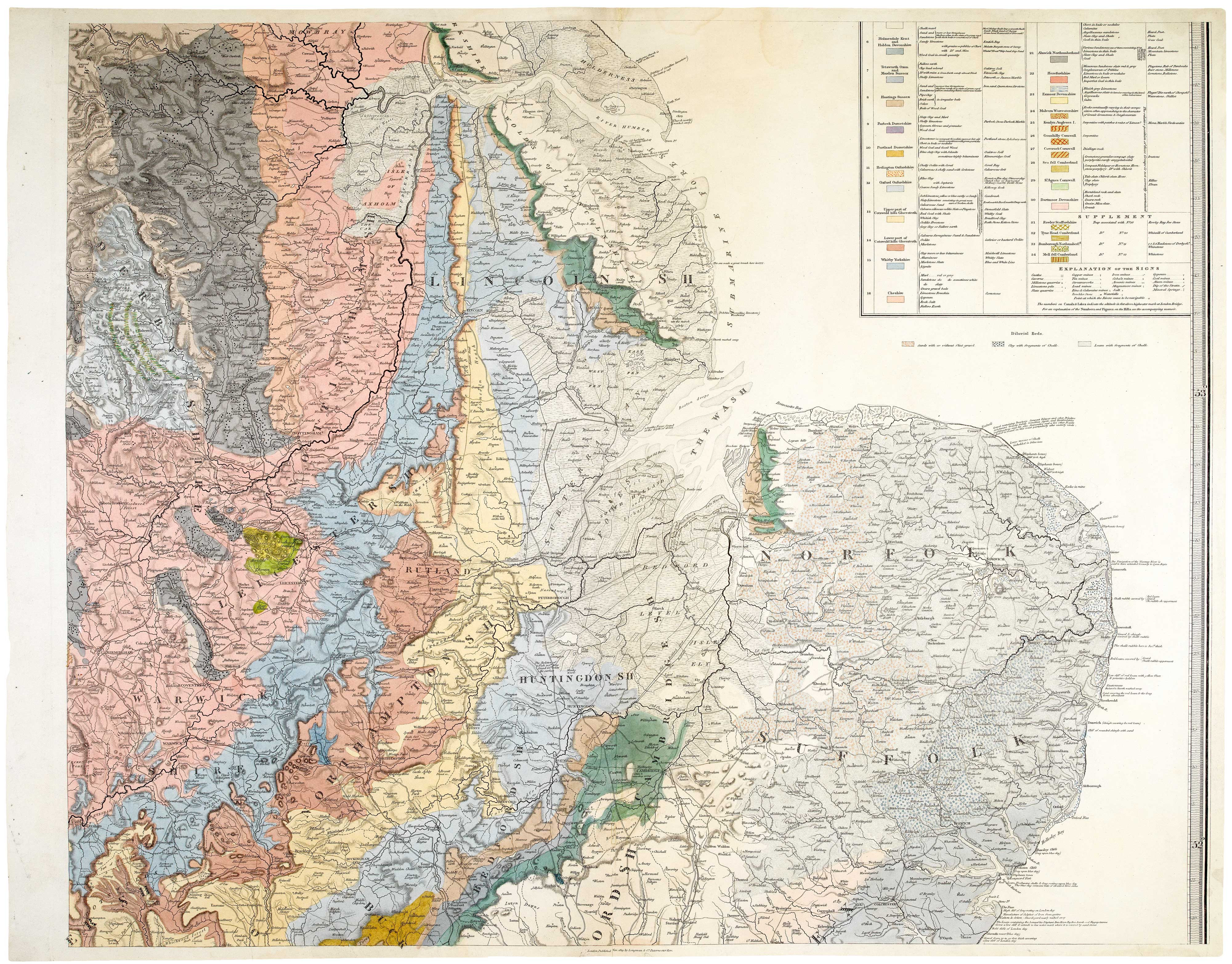 Despite Greenough's name in the title, the map was drawn by Thomas Webster (1772-1844) a Scottish geologist who was also a skilled watercolour painter. It was compiled by Greenough from various sources, not only observations of the members of the Society but also Smith's map (without acknowledgement until the 3rd edition. Despite this plagiarism, this map contains more geographical detail than Smith's and is more cartographically correct.