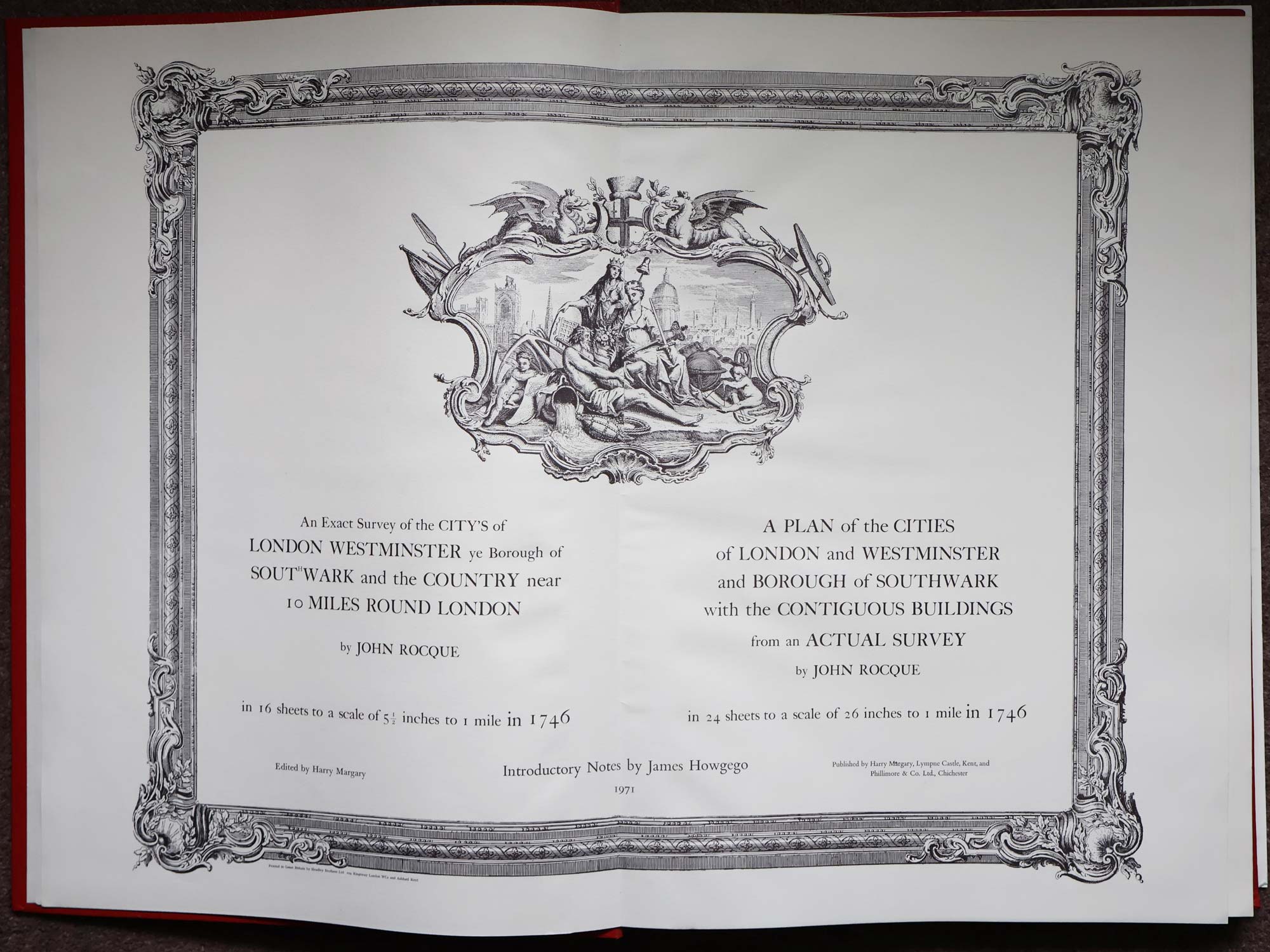 An Exact Survey of the City's of London Westminster ye Borough of Southwark and the Country near 10 Miles Round London by John Rocque.... A Plan of the Cities of London and Westminster and Borough of Southward with the Contiguous Buildings from an Actual Survey by John Rocque... Introductory Notes by James Howgeo.